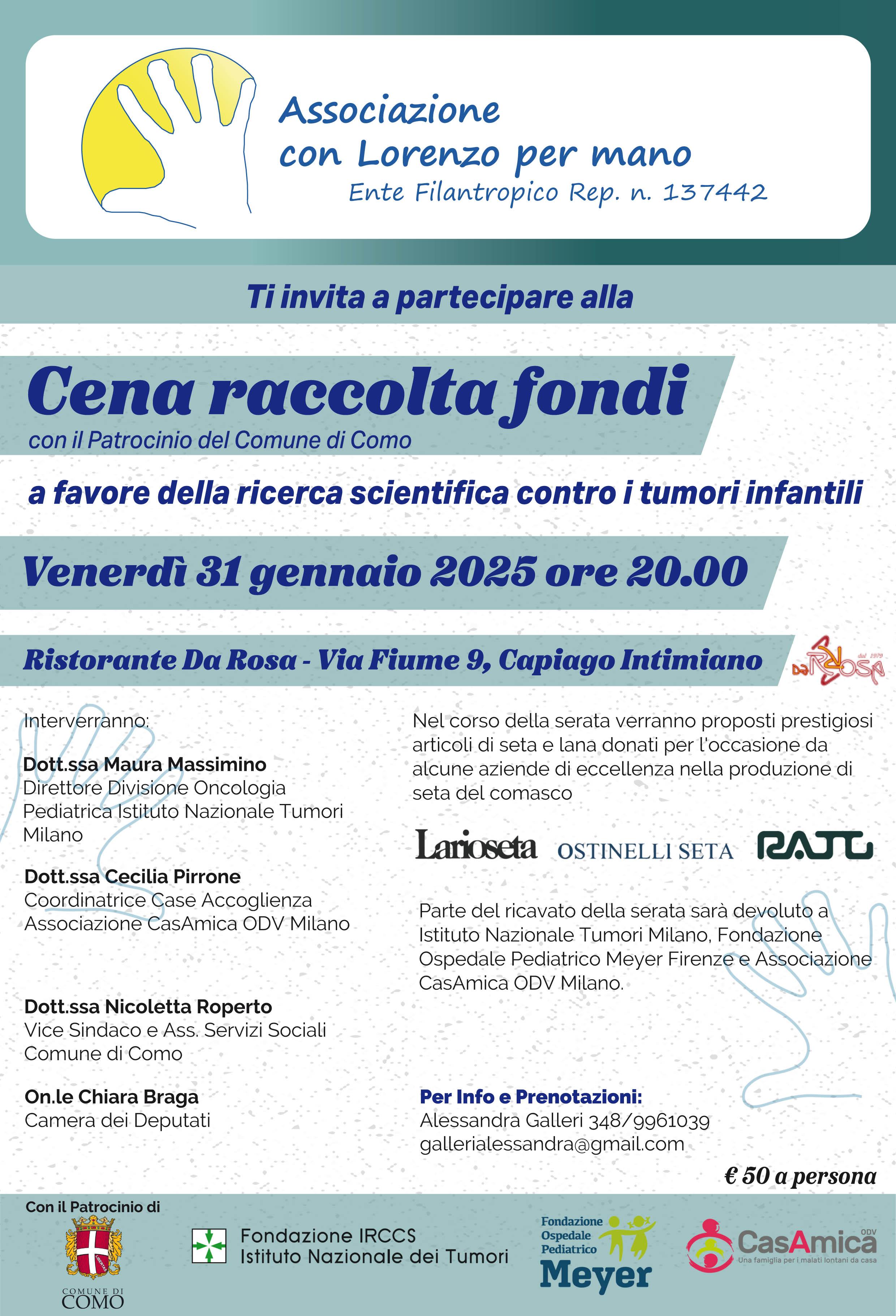 It is with this strength that we all want to start this new journey, “Con Lorenzo per mano” to help all the children with cancer, with our big conviction that investing in Research one day we will be able to find a definite cure.